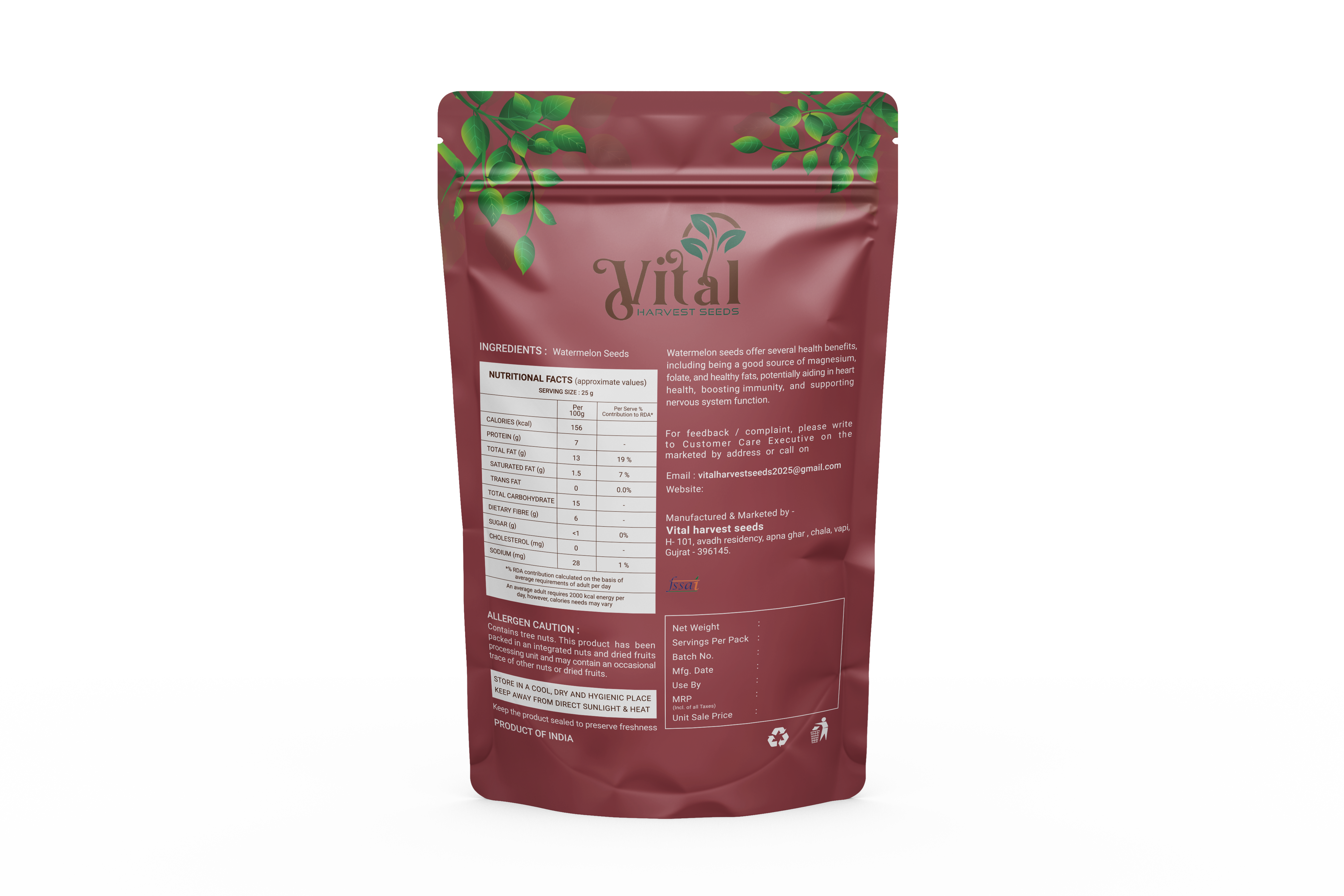 Boost your health with Vital Harvest Premium Watermelon Seeds, a nutrient-dense superfood packed with protein, fiber, healthy fats, and essential minerals like magnesium and iron. These tiny seeds offer a delicious crunch and a mild, nutty flavor, making them a perfect addition to your daily diet. Whether eaten as a snack, blended into smoothies, or used in cooking, they provide a wholesome boost of energy and nutrition.